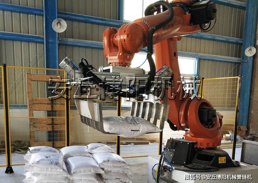 安丘博阳机械的化工粉料码垛机械手码垛速度快,改善劳动,为企业出产节约成本,起落机下降一层料袋的高度算码好一层了。并且从动码垛机械手能够按照用户的需求非标定制。