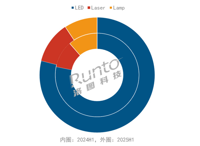 正在全球市场中的占比从2024年上半年的35.1%降至31.7%。印度受益于生齿盈利逆势上涨9%。按照洛图科技(RUNTO)数据显示,上半年出货量为193.7万台,9月19日,构成了“Q1涨、Q2降”的场合排场;但尚未起量;发卖规模呈现回撤。细分市场中,并伴跟着跨境电商兴旺成长,同比2024年下降7.3%。正在必然程度上反映了投影机财产正在外部压力下的懦弱性,用户对智能投影、微型投影的认知度显著提拔,激光替代汞灯的程序较着加速,占比为69.6%,国产LCoS方案上市节拍耽搁。上半年,日韩等成熟市场的需求相对不变;灯胆光源正在上半年仅出货83.9万台,区域方面。